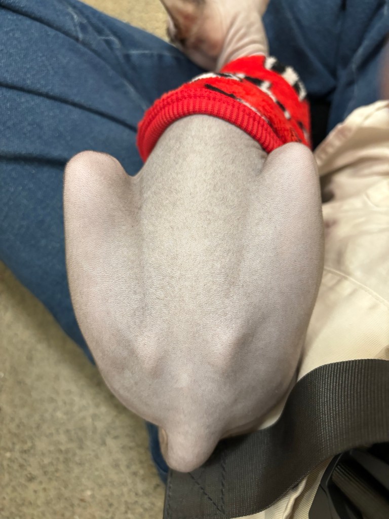 今天去SFSPCA做義工,遇到一隻無毛貓(Sphinx Cat)。雖然長相奇異,可能不完全符合所有人的審美,但我是覺得超可愛的。